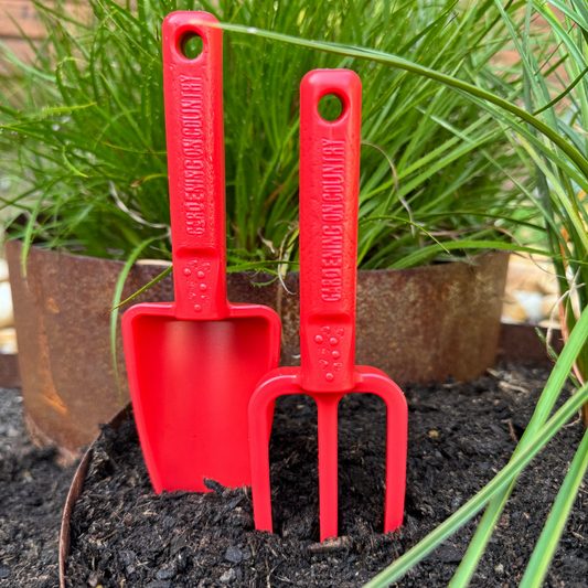 Discover Gardening on Country, a collection of Australian-made gardening tools designed for durability, functionality, and sustainability. Handcrafted from 100% recycled plastic bottle lids, these tools are made from high-density polyethylene (HDPE 2)—a material prized for its strength, lightweight nature, and resistance to UV light, chemicals, and water.